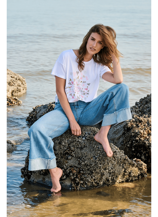 T-shirt met print (afbeelding: de beschikbare print is in een andere kleurcombinatie: witte T-shirt met blauw in de print)