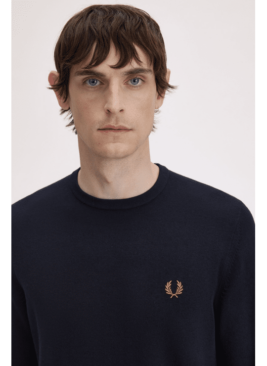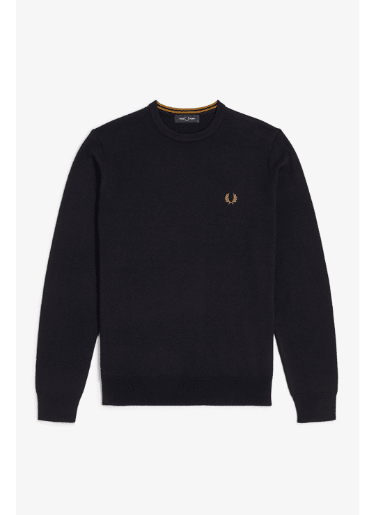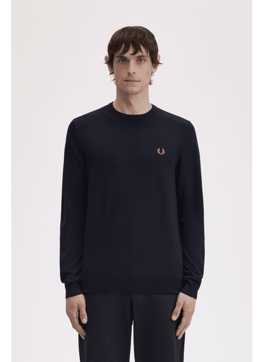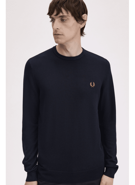 Eenvoudige en tijdloze crew neck jumper in een sportieve luxe mix van katoen en merinowol. Regular fit met geribde boorden en het iconische laurierpalm-logo op de borst.